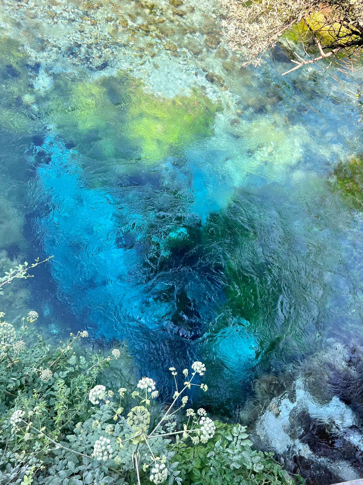 Giorno 8 – Partenza mattutina per visitare l’Occhio Blu (Sryi I Kalter), una sorgente carsica nell’entroterra di Saranda che sgorga da una profondità intorno ai 50m (mai accertati per la forte pressione interna). Arriviamo al parcheggio dove ancora ci sono pochissime macchine e camper, paghiamo il biglietto del parcheggio e saliamo a piedi per la via pedonale. Conviene parcheggiare al primo parcheggio che si incontra, salendo si rischia di rimanere imbottigliati al ritorno.
