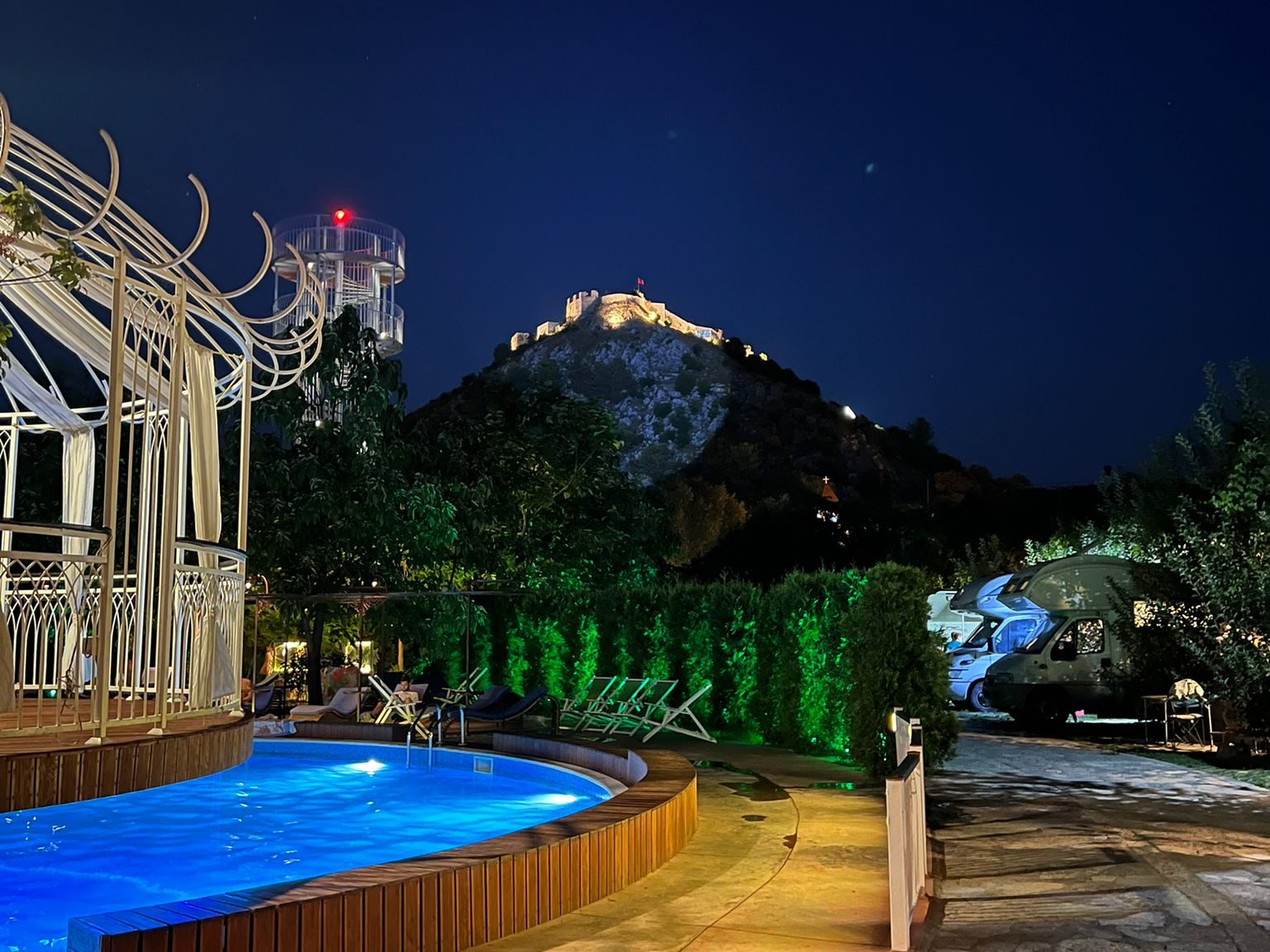 Arriviamo finalmente dopo un lungo viaggio a Scutari. Troviamo una piazzola al Camping Lejgenda, 21,5€ con piscina, bar, ristorante e aree molto curate.