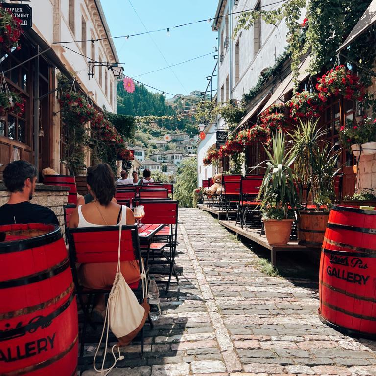 Proseguiamo per il pittoresco borgo di Girokaster, parcheggio gratuito per visita al paese e al bazar e pranzo alla taverna Kardhashi dove abbiamo mangiato con 7€ a testa: mix di burek, qopte (polpette di carne) e insalata con feta e polpette di pane. Direzione Berat dove passeremo la notte.